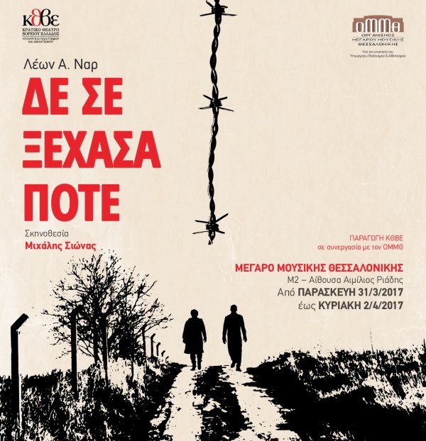 Το Κρατικό Θέατρο Βορείου Ελλάδος παρουσιάζει το έργο του Λέοντα Α. Ναρ Δε σε ξέχασα ποτέ, σε σκηνοθεσία Μιχάλη Σιώνα, στο Μέγαρο Μουσικής Θεσσαλονίκης.