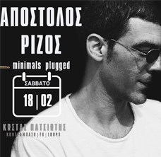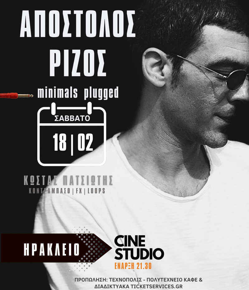 Ο Απόστολος Ρίζος, ένας από τους ξεχωριστούς ερμηνευτές και τραγουδοποιούς της εποχής μας, θα βρεθεί για μία μοναδική εμφάνιση στο Ηράκλειο, στο CINE STUDIO τo Σάββατο 18 Φεβρουαρίου, με το νέο του μουσικό project “minimals plugged”.