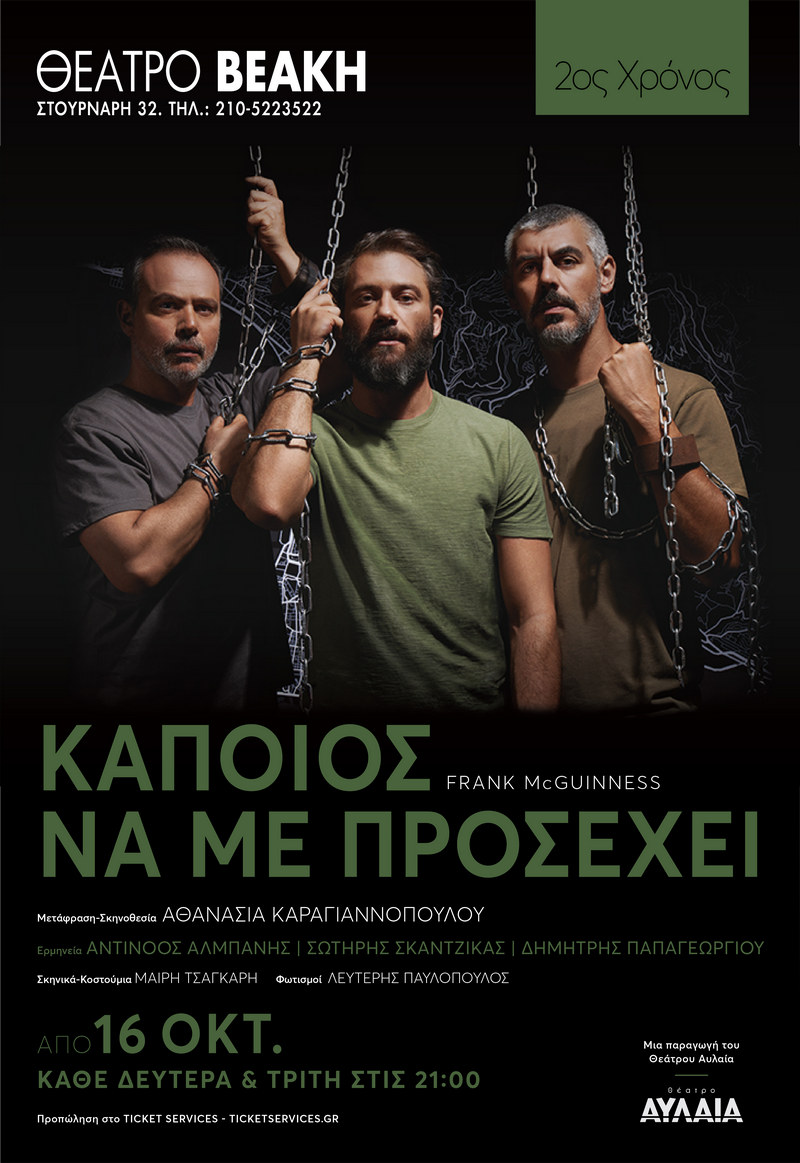 Μετά τη μεγάλη επιτυχία της προηγούμενης σεζόν σε Θεσσαλονίκη και Αθήνα, το «Κάποιος να με προσέχει» του Frank McGuinness σε σκηνοθεσία Αθανασίας Καραγιαννοπούλου ανεβαίνει για δεύτερη χρονιά, σε νέο χώρο, στο θέατρο Βεάκη από τις 16 Οκτωβρίου και για περιορισμένο αριθμό παραστάσεων.