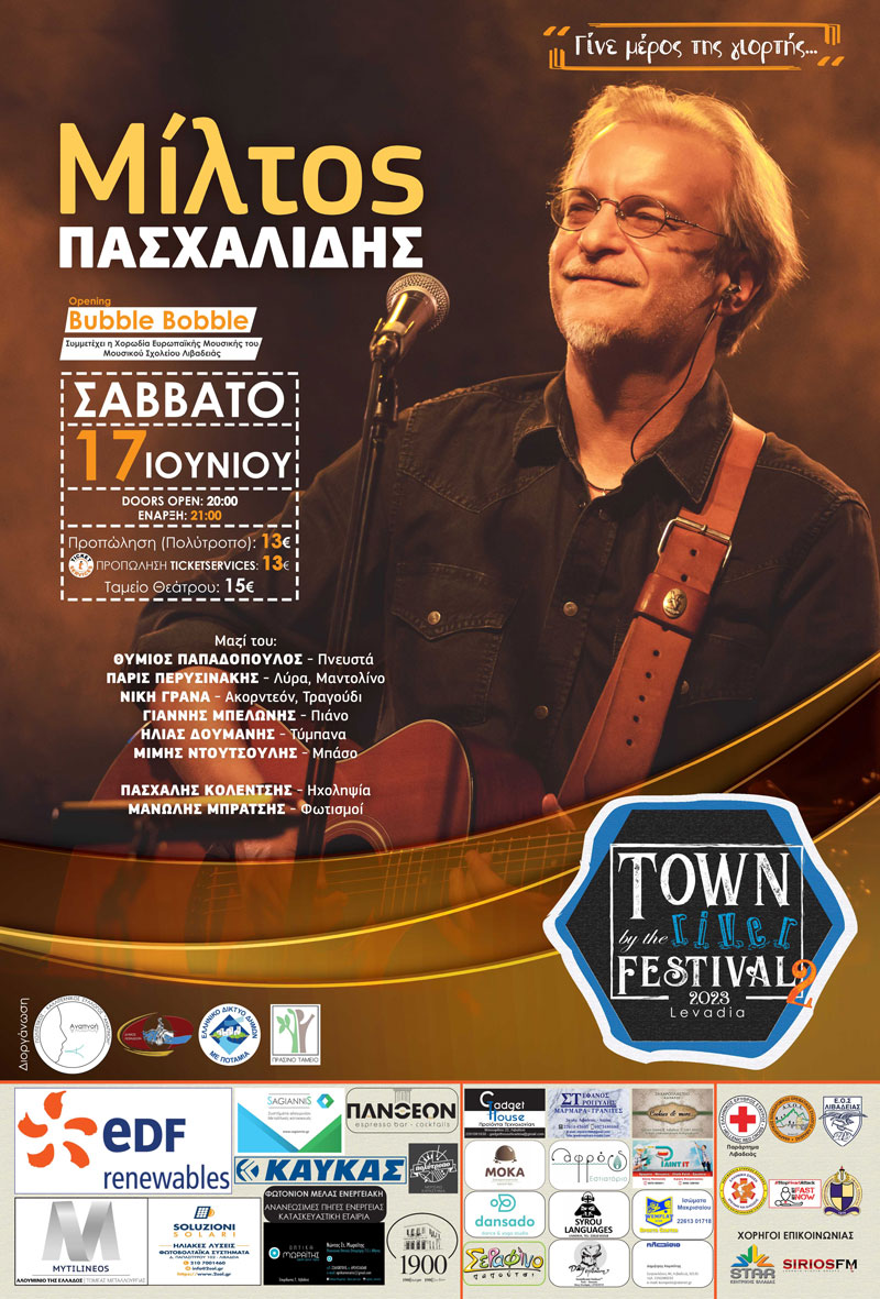 Με αποσκευές τα τραγούδια 28 χρόνων δισκογραφίας αλλά κυρίως με τον ενθουσιασμό για ένα Καλοκαίρι αυθόρμητο και δυναμικό, ο Μίλτος σε μια συναυλία από αυτές που μένουν αξέχαστές στα πλαίσια του δεύτερου TOWN BY THE RIVER FESTIVAL.