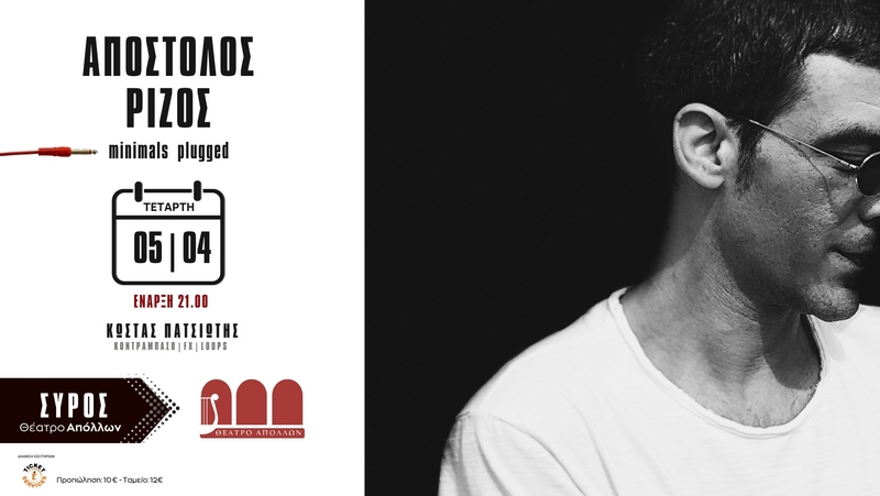 Ο Απόστολος Ρίζος ταξιδεύει φέτος με την μουσική παράσταση του “Minimals Plugged”, η οποία έχει αγκαλιαστεί θερμά από το κοινό, και θα βρεθεί την Τετάρτη 5 Απριλίου για μία μοναδική εμφάνιση στο Θέατρο Απόλλων της Ερμούπολης Σύρου.