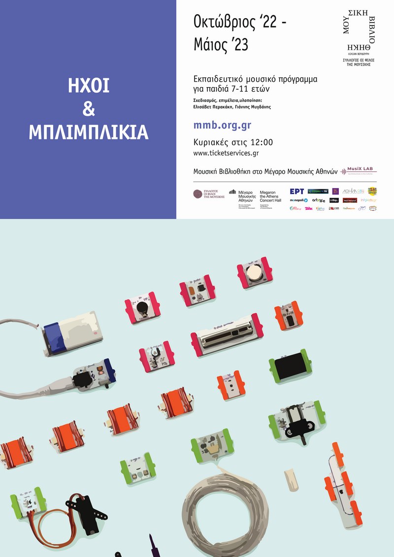 Πώς κατασκευάζεται ένα ηλεκτρονικό ψηφιακό όργανο; Από ποια στοιχεία αποτελείται ένα συνθεσάιζερ; Πώς συνδέεται ο ηλεκτρισμός με τον ήχο; Τι μουσική, άραγε, μπορεί να έχει μια διαστημική ιστορία; Μπορούμε να συνοδεύσουμε ηχητικά μια ταινία χωρίς να ξέρουμε μουσική; Με τη βοήθεια των littleBits και ακολουθώντας τις αρχές του δια-επιστημονικού μοντέλου SΤΕΑΜ, θα κατασκευάσουμε τα δικά μας πρωτότυπα μουσικά ηλεκτρονικά μουσικά όργανα με κυκλώματα χωρίς καλώδια και θα συνθέσουμε τη δική μας μουσική για ένα κινούμενο σχέδιο. Μέσα από το παιχνίδι και τον πειραματισμό θα ανακαλύψουμε πώς συνδυάζεται δημιουργικά ο μουσικός και τεχνολογικός μας κόσμος και θα καλλιεργήσουμε την υπολογιστική μας σκέψη και τις μουσικές μας δεξιότητες.
