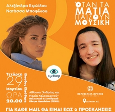 Η Αλεξάνδρα Κερλίδου, η πρώτη Ελληνίδα μουσικός με σπαστική τετραπληγία και αδυναμία λόγου, που κατάφερε να γκρεμίσει τα εμπόδια της αναπηρίας και να κάνει το όνειρο της πραγματικότητα παίζοντας μουσική με την κίνηση μόνο των ματιών της χάρη στην τεχνολογία του EyeHarp που δημιούργησε ο Ζαχαρίας Βαμβακούσης, ενώνει για άλλη μια φορά τις καλλιτεχνικές της δυνάμεις με την σπουδαία ερμηνεύτρια Νατάσσα Μποφίλιου σε μια ξεχωριστή εκδήλωση στην οποία η Περιφέρεια Κρήτης τιμά την Παγκόσμια Ημέρα Πιάνου.