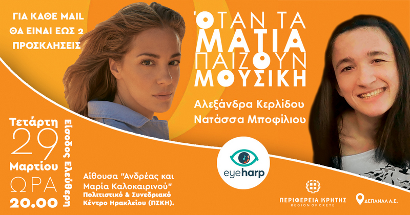 Την έναρξη της εκδήλωσης θα κάνει η Μαρία Βαρσαμά, η οποία ως Διδάκτορας με εξειδίκευση στην Εκπαιδευτική Συμπερίληψη αλλά και ως Πρέσβειρα του EyeHarp στην Ελλάδα, θα παρουσιάσει το λογισμικό στο κοινό και θα μιλήσει για την πρόσφατη εισαγωγή του EyeHarp στην Δημόσια Εκπαίδευση. Την συναυλία, η οποία αναμένεται να καθηλώσει τους παρευρισκόμενους θα συνοδεύσουν στο τραγουδιστικό μέρος η Νεανική Χορωδία της Περιφερειακής Ενότητας Ηρακλείου υπό τη Διεύθυνση της Λένας Χατζηγεωργίου και στο μουσικό μέρος ο Αντώνης Παλαμάρης και ο Νίκος Κοκκίνης στο πιάνο, ο Ζαχαρίας Βαμβακούσης στο ακορντεόν και ο Ανδρέας Τυμπακιανάκης στο μπουζούκι, που με την παρουσία του θα αποδείξει πως τίποτα δεν μπορεί να σταθεί εμπόδιο στα όνειρα και την προσπάθεια, όντας τυφλός ο ίδιος.