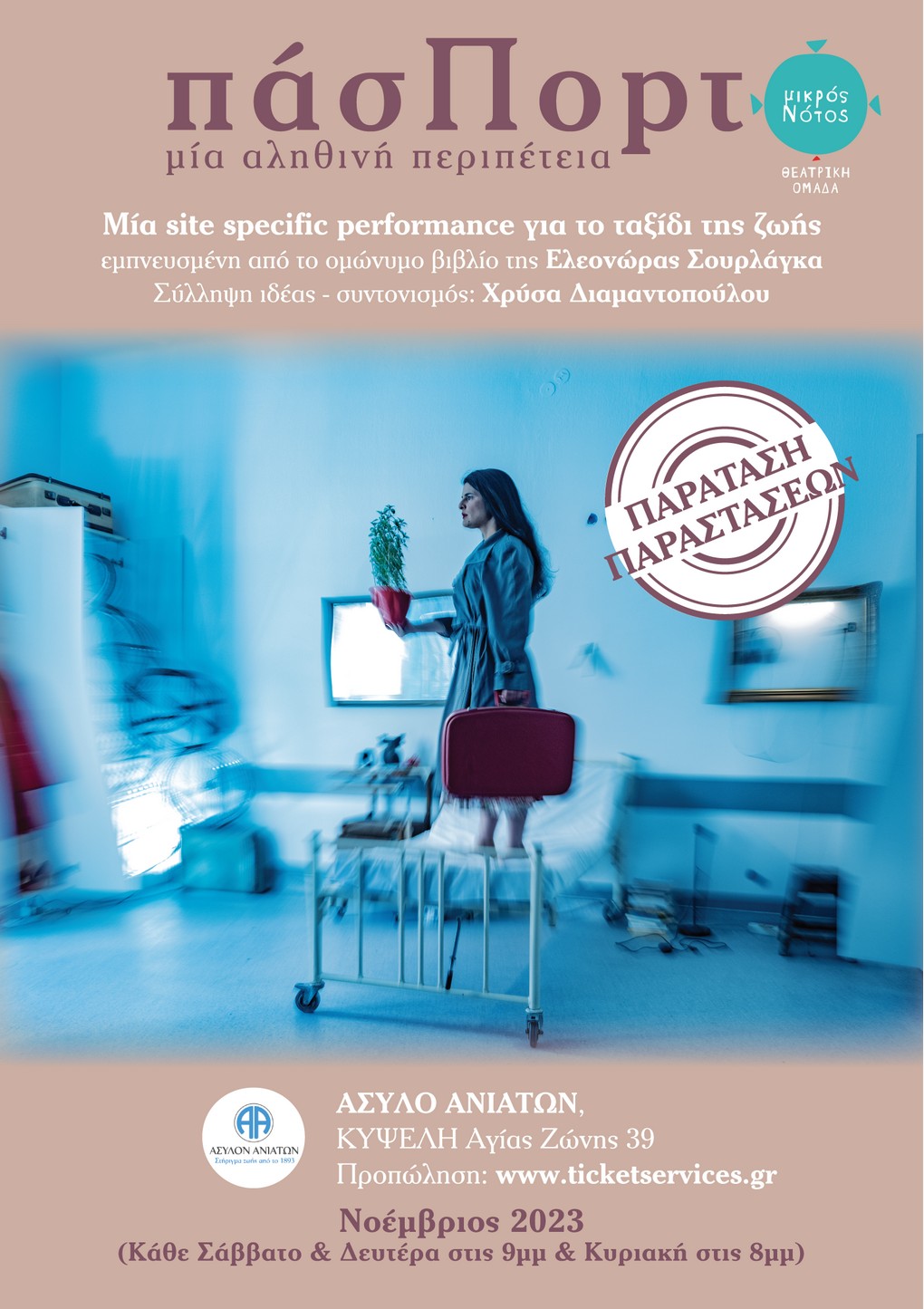 Το «ΠασΠορτ - Μια αληθινή περιπέτεια» είναι η πρώτη site specific performance της θεατρικής ομάδας Μικρός Νότος, που χρησιμοποιεί στοιχεία από το «καθηλωτικό θέατρο» (immersive theatre) ένα είδος σύγχρονου θεάτρου, που καταργεί τα θεατρικά καθίσματα και δημιουργεί/ενθαρρύνει την ανάγκη του θεατή να ανακαλύψει ο ίδιος την προσωπική του διαδρομή μέσα στη θεατρική εμπειρία. Οι θεατές περιηγούνται μέσα στα ειδικά διαμορφωμένα δωμάτια της Πτέρυγας του Νοσηλευτηρίου του Ιδρύματος Περιθάλψεως Χρονίως Πασχόντων του Ασύλου Ανιάτων και μία αληθινή περιπέτεια ξεκινά!