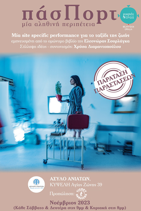 Η θεατρική ομάδα Μικρός Νότος, έχοντας θέσει στον πυρήνα της καλλιτεχνικής δημιουργίας για το 2021-23 την έννοια του τραύματος - ψυχικού και σωματικού- υλοποιεί παραστάσεις και πρωτότυπες δράσεις που απευθύνονται σε κοινό από 16 ετών και πάνω. Μετά την επιτυχία της παράστασης «FRIDA 2.0, μια παράσταση - γιορτή για το σώμα, τον πόνο, τη χαρά, τη ζωή», εμπνευσμένης από τη ζωή και το έργο της ζωγράφου Frida Kahlo στο θέατρο Arroyo (Απρίλιος 2022) και στο ιστορικό Θεσσαλικό Θέατρο (Μάιος 2022), η θεατρική ομάδα Μικρός Νότος παρουσιάζει την πρώτη site specific performance της με τίτλο «ΠασΠορτ - ΜΙΑ ΑΛΗΘΙΝΗ ΠΕΡΙΠΕΤΕΙΑ».