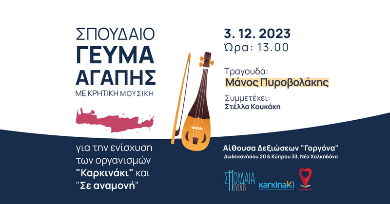 Εκδήλωση: Σπουδαίο Γεύμα Αγάπης για την ενίσχυση των οργανισμών "Καρκινάκι" και "Σε αναμονή"