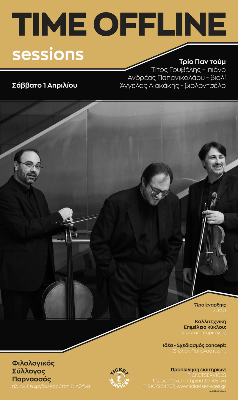 Το Τρίο Παντούμ, ένα από τα πιο δραστήρια σύνολα μουσικής δωματίου της χώρας, μοιράζει το ενδιαφέρον και τη δράση του σε όλο το φάσμα του ρεπερτορίου με την ίδια αγάπη και αφοσίωση. Κάτι τέτοιο καθίσταται προφανές στο πρόγραμμα που παρουσιάζει στην αίθουσα του Φιλολογικού Συλλόγου «Παρνασσός» την 1η Απριλίου 2023.
