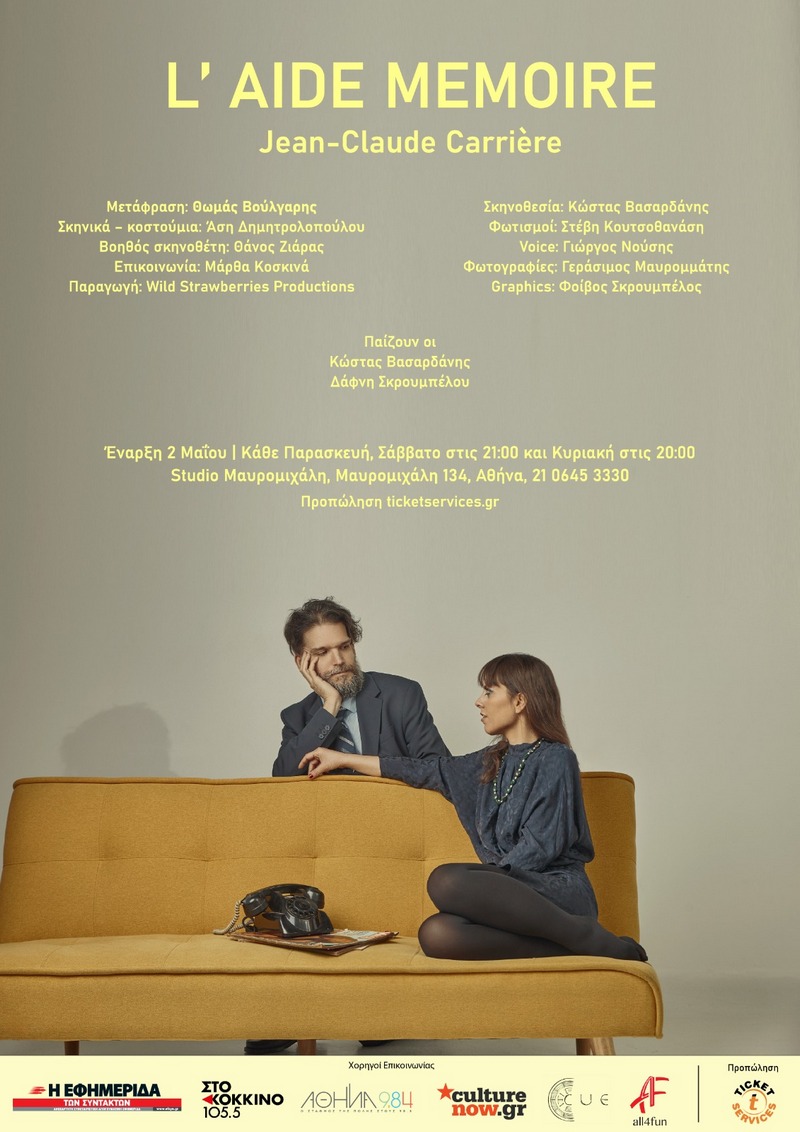 Στις 2 Μαΐου κάνει πρεμιέρα στο Στούντιο Μαυρομιχάλη, για λίγες μόνο παραστάσεις, το LΆ aide memoire του σημαντικού Γάλλου συγγραφέα Ζαν-Κλωντ Καρριέρ, σε σκηνοθεσία Κώστα Βασαρδάνη.