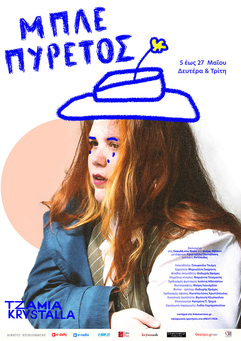 Το Μπλε Πυρετός, βασισμένο στο «Σπουδή στο Μπλε» (μτφ. Κρυστάλλη Γλυνιαδάκη, εκδόσεις Αντίποδες) της Αμερικανίδας πεζογράφου, ποιήτριας και δοκιμιογράφου, Μάγκι Νέλσον («Αργοναύτες»), θα παρουσιαστεί ως μονόλογος σε σκηνοθεσία της Σταυρούλας Τσιάμη (LINSLUS), και ερμηνεία της Μαριαλένας Σκαρώνη (αστΕΡΩΣκονη, βάιζα {ETM. Αρβαν. <κορίτσι,κόρη>}, LINSLUS).