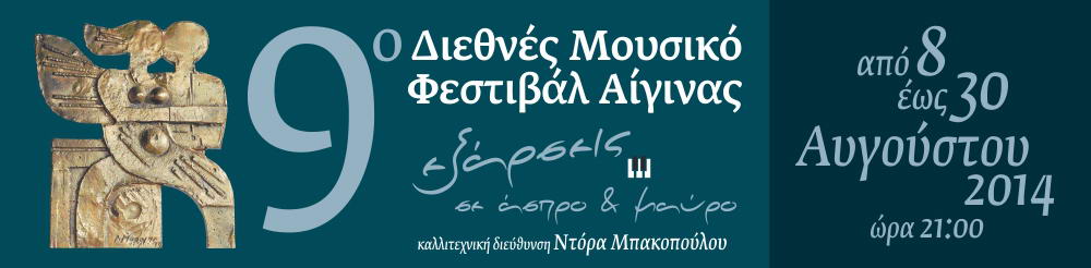 Το 9ο Διεθνές Μουσικό Φεστιβάλ Αίγινας διοργανώνεται από την Παρασκευή 8 έως το Σάββατο 30 Αυγούστου 2014, με την Καλλιτεχνική Διεύθυνση της Ντόρας Μπακοπούλου και την ουσιαστική υποστήριξη του Συλλόγου των Φίλων του.
