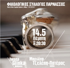 Η Iwona Glinka (φλάουτο) και η Μαριλίνα Τζελέπη-Πατέρας (πιάνο)συνεχίζουν και φέτος τη σειρά συναυλιών με θέμα «Γνωριμία με τη Σύγχρονη Ελληνική Μουσική Δημιουργία», στις οποίες παρουσιάζουν, μεταξύ άλλων, έργα σύγχρονων Ελλήνων συνθετών σε πρώτη παγκόσμια εκτέλεση. Με τον τρόπο αυτό, οι δυο καλλιτέχνιδες συμβάλλουν ουσιαστικά όχι μόνο στην προβολή και στην υποστήριξη της ελληνικής μουσικής δημιουργίας, αλλά και στην εξοικείωση του κοινού με τη σύγχρονη μουσική.