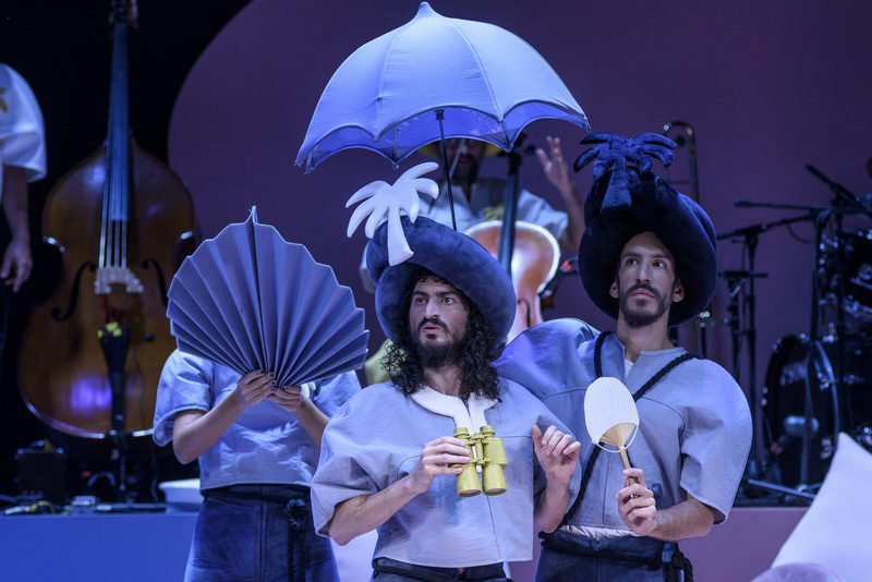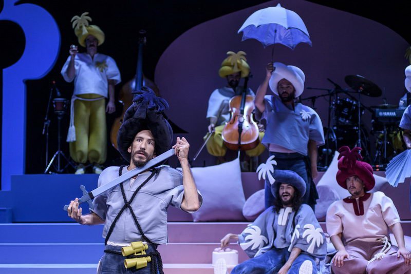 υλικά της κωμωδίας και των καρτούν, μουσική και πολύχρωμα σκηνικά και