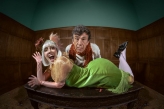 Η μουσική, ζωντανή, δυναμική πρωταγωνιστεί κι αυτή, επιτρέποντας την υπέρβαση: δύο αντίθετες πραγματικότητες συναντιούνται, καθώς ο κόσμος του θεάματος εισβάλει σ' ένα φτωχικό, μίζερο σπίτι. Με την έναρξη της παρεξήγησης, ο εκρηκτικός μουσικός κόσμος της παράστασης αρχίζει να ξετυλίγεται. Ο τρελός ρυθμός των ντραμς μοιάζει να κυνηγά την ιστορία που εκσφενδονίζεται προς τα μπρος, χάνει τον ρεαλισμό της και μεταμορφώνεται σε κάτι που θυμίζει ανατρεπτικό τσίρκο.