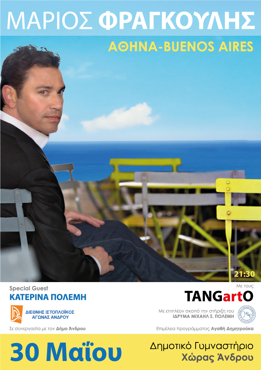 With his voice and soul filled with the Aegean Blue Sea and the nostalgia for faraway journeys, Mario Frangoulis makes his first stop in Andros and offers his audience a concert with the vibes of a true and clear sentiment of Tango, a unique evening of passion and musical communion.
