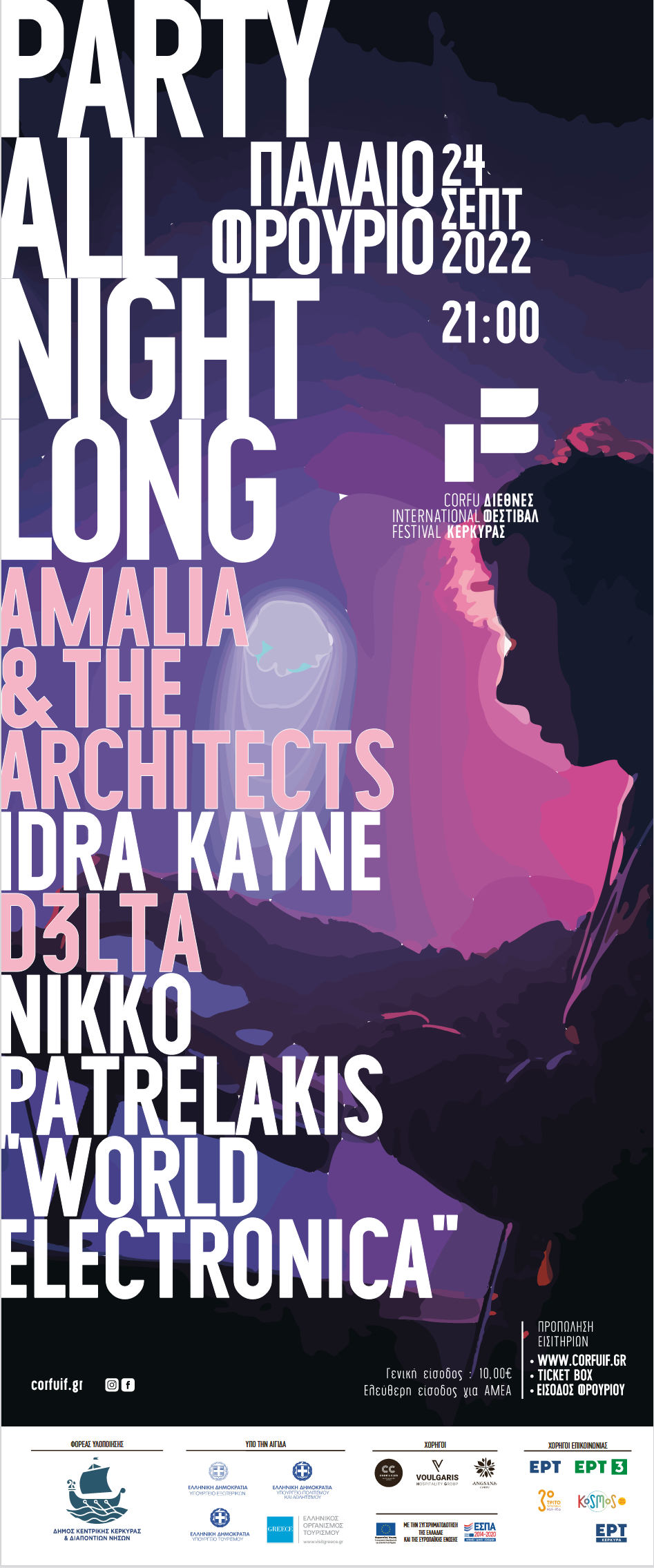 Ένα ξέφρενο party στήνεται στο πλαίσιο του Διεθνούς Φεστιβάλ Κέρκυρας το Σάββατο 24 Σεπτεμβρίου! Ένα μουσικό "hopping" σε αγαπημένα μουσικά είδη με φόντο το Παλαιό Φρούριο! Soul funk ήχοι, punk, indie rock, folk και pop μελωδίες αλλά και ένα ξεσηκωτικό DJ set συνθέτουν το απόλυτο μουσικό μίγμα για όλα τα γούστα Ένα δυναμικό lineup που υπόσχεται μια βραδιά γεμάτη ένταση!