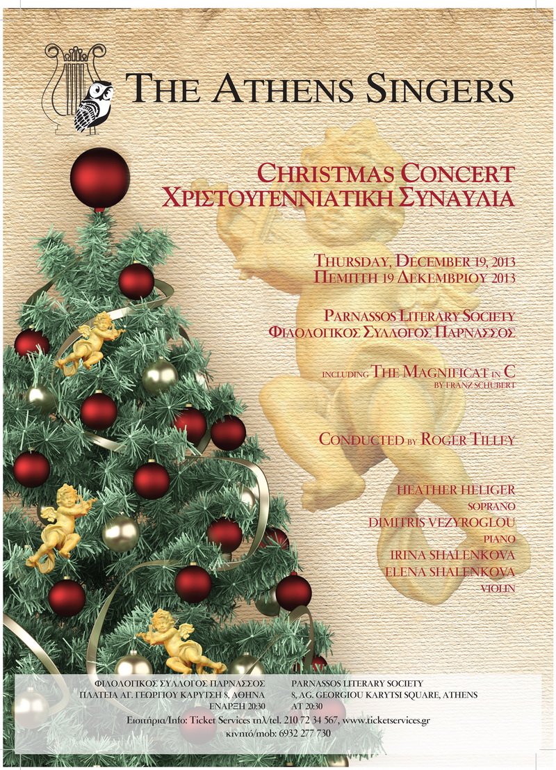 Με... έλκηθρο τα πιο γνωστά Χριστουγεννιάτικα κάλαντα, μας καλούν να γλιστρήσουμε μαζί τους, στο χαρμόσυνο πνεύμα των ημερών, οι «Athens Singers», την Πέμπτη 19 Δεκεμβρίου, στην Αίθουσα Συναυλιών του Φιλολογικού Συλλόγου Παρνασσός. Ύμνοι από την περίοδο του Μεσαίωνα, έργα των Schubert, Britten και Handel, το Απολυτίκιο των Χριστουγέννων, κάλαντα απ’ όλο τον κόσμο, αλλά και τα πιο γνωστά Χριστουγεννιάτικα τραγούδια, συνθέτουν την πιο ζεστή και συγκινητική ατμόσφαιρα, μας καλούν να γίνουμε πάλι για λίγο παιδιά και να ζήσουμε την πιο μεγάλη γιορτή του χρόνου.