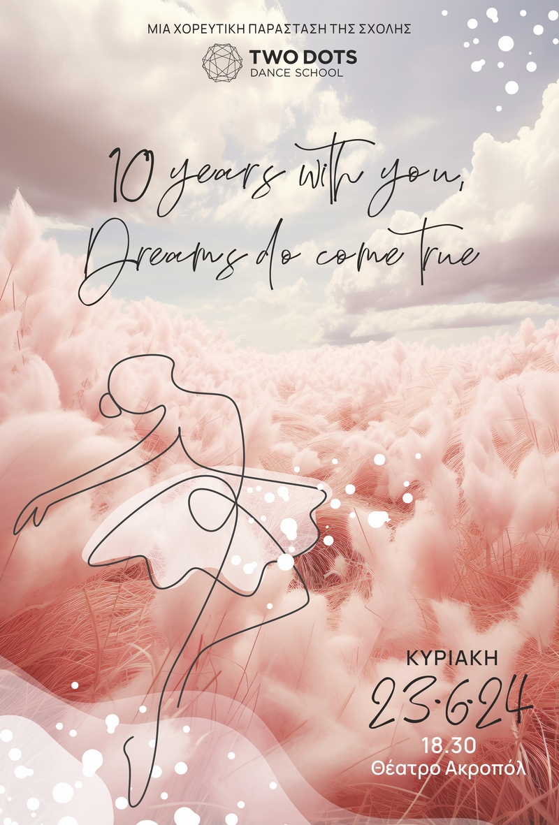 Η σχολή χορού Two Dots κλείνει φέτος τα 10 χρόνια λειτουργίας της, γιορτάζοντας την επιτυχημένη διαδρομή της με μία μοναδική παράσταση!