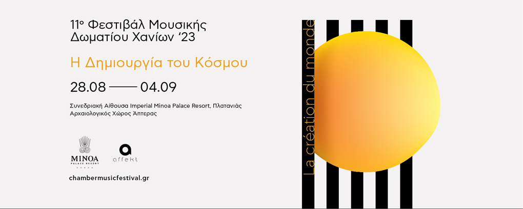 Το φετινό Φεστιβάλ φέρει το γενικό τίτλο «Η Δημιουργία του Κόσμου - Création du Monde». Εκκινώντας από την ομώνυμη μουσική μπαλέτου που συνέθεσε ο Γάλλος συνθέτης Darius Milhaud το 1923, το Φεστιβάλ φέρνει - στις πέντε συναυλίες του εκ των οποίων οι δύο θα πραγματοποιηθούν στον εμβληματικό χώρο του Θεάτρου της Αρχαίας Άπτερας με την αμέριστη υποστήριξη της Εφορείας Αρχαιοτήτων Χανίων και της Περιφέρειας Κρήτης - στο επίκεντρο έργα μουσικής δωματίου που καινοτόμησαν με την αισθητική και το περιεχόμενό τους και άνοιξαν νέους ορίζοντες... έργα που Δημιούργησαν (νέους) Κόσμους.