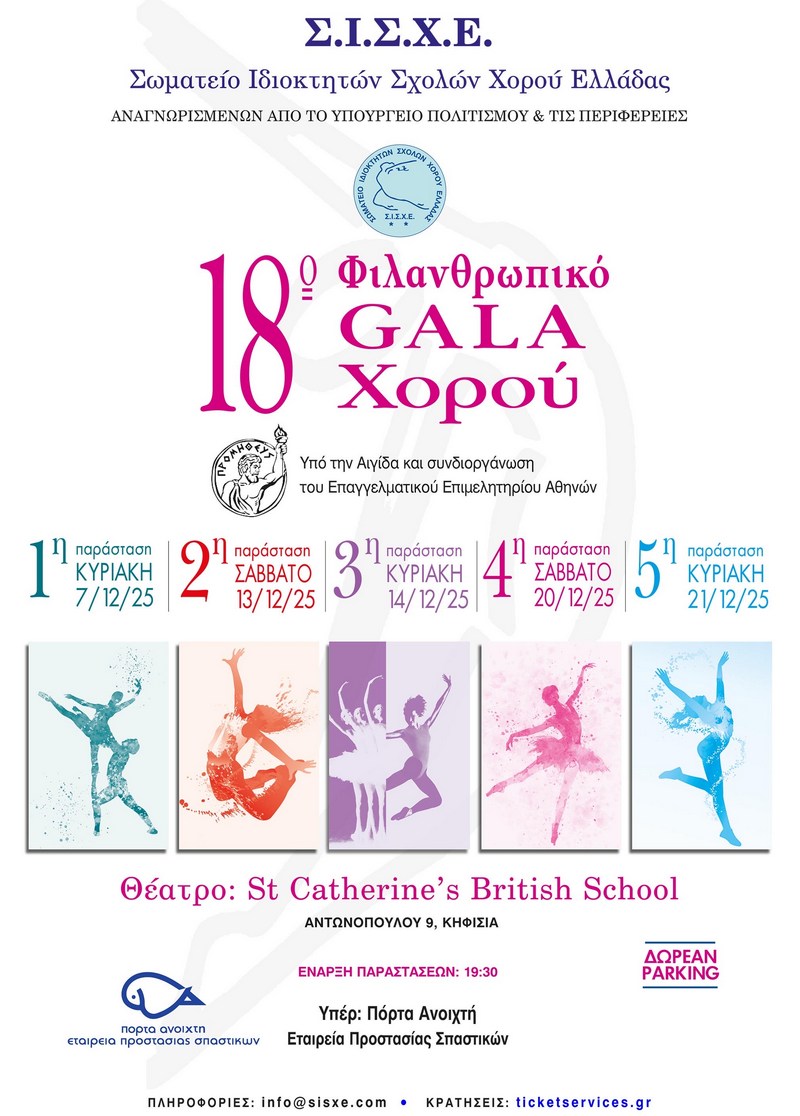 • Κυριακή 14 Δεκεμβρίου 2025, 19:30 18ο Φιλανθρωπικό Gala Χορού