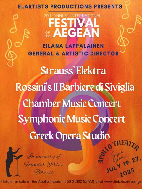 Ανακοινώνοντας την 20ή Επετειακή Περίοδο του Διεθνούς Φεστιβάλ Αιγαίου, 17-27 Ιουλίου 2025, στο Θέατρο Απόλλων στην Ερμούπολη της Σύρου!