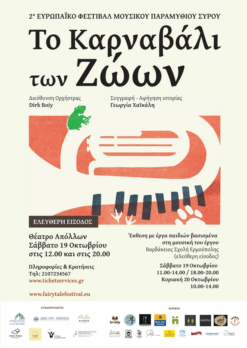 Το Σάββατο 19 Οκτωβρίου, το 2ο ΕΥΡΩΠΑΪΚΟ ΦΕΣΤΙΒΑΛ ΜΟΥΣΙΚΟΥ ΠΑΡΑΜΥΘΙΟΥ ΣΥΡΟΥ- θα παρουσιάσει στο Θέατρο Άπολλων το διάσημο έργο κλασικής μουσικής για παιδιά «Το Καρναβάλι των ζώων», συνδυασμένο με μια πρωτότυπη ιστορία!