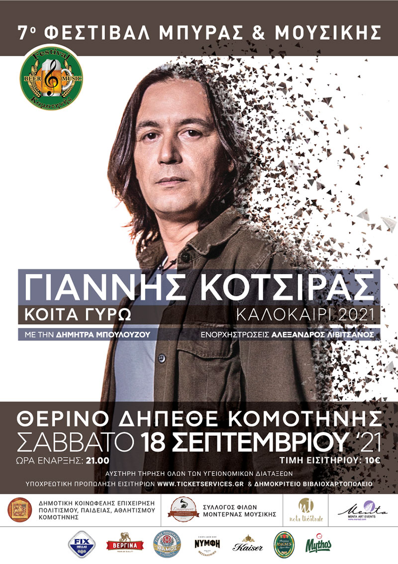 Συμβολικό και τόσο επίκαιρο σε αυτή την πρωτόγνωρη κατάσταση που βιώνουμε. Από το πρόγραμμα δεν θα λείψουν φυσικά και τα καινούρια τραγούδια από την νέα δισκογραφική του δουλειά όπως τα «Έρωτας ή τίποτα», «Καρδιά μου», «Την αμαρτία μου τη λέω». Περιμένουμε ανυπόμονα την εμφάνιση του στο 7ο Φεστιβάλ Μπύρας & Μουσικής Κομοτηνής, που τόσο μας έχει λείψει!