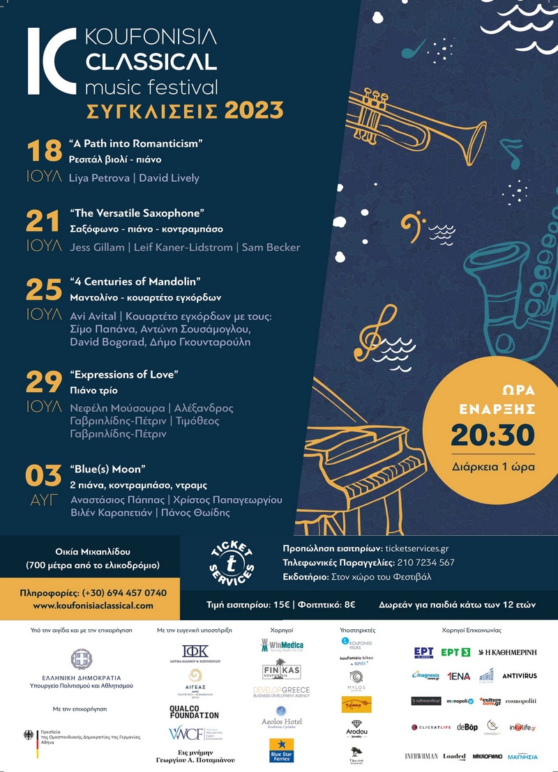Το Φεστιβάλ Κλασικής Μουσικής Κουφονησίων επιστρέφει για όγδοη συνεχή χρονιά με ένα πολυποίκιλο πρόγραμμα εκδηλώσεων, υπό την καλλιτεχνική επιμέλεια του ιδρυτή του, μαέστρου και πιανίστα, Κορνήλιου Μιχαηλίδη, διατηρώντας την υψηλή καλλιτεχνική ποιότητα για την οποία διακρίνεται όλα αυτά τα χρόνια.