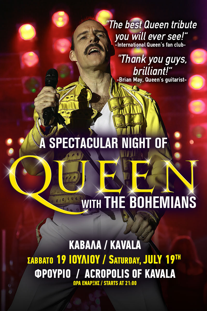 "Bohemian Rhapsody", "The Show Must Go On", "We Will Rock You", "I Want to Break Free", "A Kind of Magic", "We Are the Champions" και "Radio Ga Ga" είναι μόνο μερικές από τις μεγάλες επιτυχίες των θρυλικών Queen, που ζωντανεύουν επί σκηνής το Σάββατο 19 Ιουλίου στο «Θέατρο του Φρουρίου» στην Καβάλα .