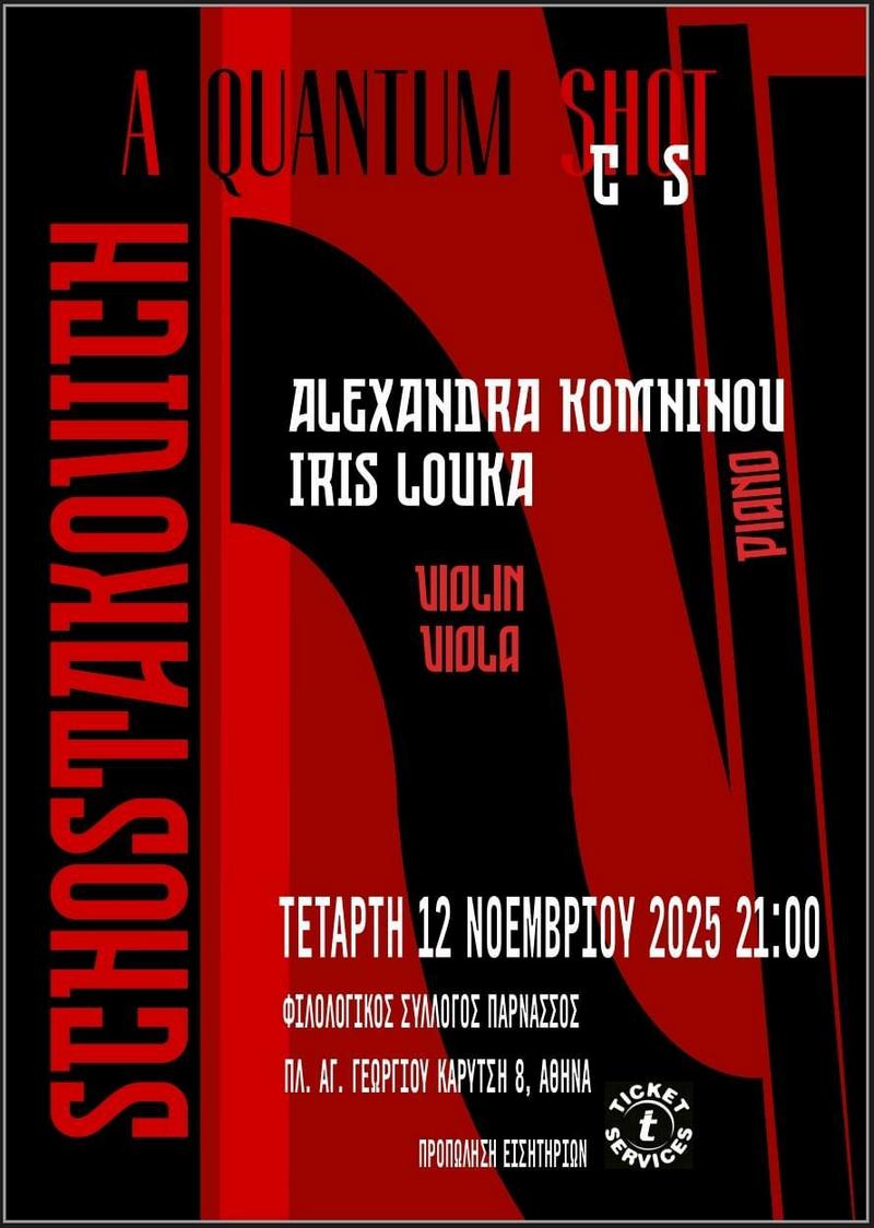 Αυτή είναι η μουσική του Dmitri Schostakovich που διαισθητικά και ιδιοφυώς, και όπως πολύ πρόσφατα προτεινε με μελέτη της η ερευνήτρια του Harvard Bridget Queenan, στηριζόμενη στα πειράματα του Max Planck με χορωδία, περικλείει αυτούς τους κβαντικούς νόμους της ζωής, σε κάθε φράση των αριστουργημάτων του και οι κυματομορφές τους σπάνε τα όρια του ανέφικτου κλασικού και μας δείχνουν την ομορφιά του νέου μουσικού μας σύμπαντος και αποχαιρετώντας μας με την σονάτα για βιόλα και πιάνο, που ήταν και το τελευταίο έργο της ζωής του..