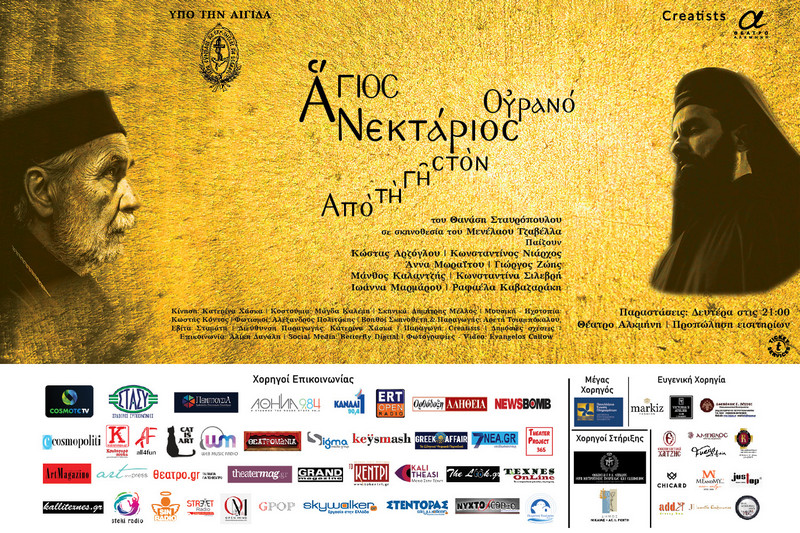 Μετά την μεγάλη απήχηση του κοινού, τα συνεχόμενα sold out, από την πρώτη ημέρα που παρουσιάστηκε στο θέατρο ΑΛΚΜΉΝΗ, καθώς και τις διθυραμβικές κριτικές των θεατών και των θεατρολόγων, η παράσταση "ΑΓΙΟΣ ΝΕΚΤΑΡΙΟΣ ΑΠΟ ΤΗ ΓΗ ΣΤΟΝ ΟΥΡΑΝΟ", του Θανάση Σταυρόπουλου, υπο την σκηνοθετική μπαγκέτα του Μενέλαου Τζαβέλλα και παραγωγή Creatists υπό την διεύθυνση της Κατερίνας Χάσκα, θα συνεχίσει την επιτυχημένη πορεία της για δεύτερη χρονιά, στο θέατρο ΑΛΚΜΗΝΗ, από την Δευτέρα 3 Νοεμβρίου.