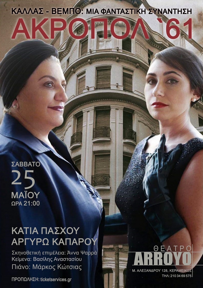 Η Μαρία Κάλλας, η φωνή του κόσμου, "συναντά" τη Σοφία Βέμπο, τη φωνή της Ελλάδας, σε μια βραδιά με διαδηλώσεις για το "Ένα-Ένα Τέσσερα" - "Βία και νοθεία", που διαδραματίζονται στην διασταύρωση των οδών Πατησίων και Στουρνάρη, μπροστά στο Πολυτεχνείο, στην γωνία του ιστορικού ξενοδοχείου ΑΚΡΟΠΟΛ ΠΑΛΛΑΣ. Στο πιάνο / μπαρ του ξενοδοχείου "Ακροπόλ Παλλάς", καταφεύγουν και οι δύο κυρίες, γιατί δεν έχουν πρόσβαση στις οικίες τους λόγω της διαδήλωσης. Η κατοικία της Μ. Κάλλας βρίσκεται επί της οδού Πατησίων και η ίδια μόλις έχει έρθει στην Ελλάδα , για να λάβει την ελληνική υπηκοότητα. Η Σ. Βέμπο κατοικεί στην οδό Στουρνάρη εκείνη τη χρονιά και μόλις έχει σχολάσει απο την απογευματινή της παράσταση. Στο φουαγιέ του ξενοδοχείου παίζει πιάνο ο Κώστας, συνεργάτης της Κας Βέμπο στο θέατρο. Εκεί έχει βρει δεύτερη εργασία, διότι θα γίνει για πρώτη φορά πατέρας και τα έξοδα για την οικογένεια μεγαλώνουν. Σε αυτό το φουαγιέ μπαίνει πρώτα η Βέμπο αναστατωμένη από τα όσα διαδραματίζονται στην γειτονιά της και αφού έκπληκτη συναντά τον συνεργάτη της, πιάνουν την κουβέντα. Στη συνέχεια.. και για να περάσει η ώρα, ξεκινούν μια πρόβα για 2 καινούργια τραγούδια. Ενώ κάνουν την πρόβα τους, φτάνει στο φουαγιέ η Κάλλας πολύ ήσυχα και...