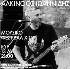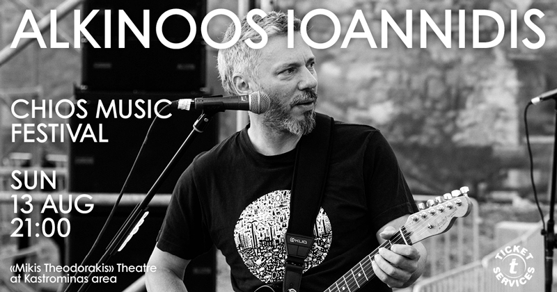Alkinoos Ioannidis, accompanied by his historic group, will perform in the most touching way at the closing of the Chios Music Festival on 13 August, “Mikis Theodorakis” Theatre at Kastrominas area. Two decades after their first joint appearances and the live recording at the Lycabettus Theatre, the great musicians Stavros Lantsias (keyboards), Miltiadis Papastamou (electric violin), Giotis Kiourtsoglou (electric bass) and Michael Kapilidis (drums) meet again on stage for an electrical feast of favourite songs, unexpected covers and that ever-living reassertion of the relationship between the musicians and the audience that occurs at every performance of the beloved songwriter. A precious exchange of souls that we can all benefit from.