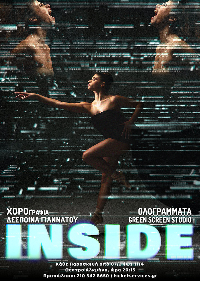 Ένας ηθοποιός και τρεις χορευτές μάς οδηγούν στον συναρπαστικό κόσμο του INSIDE, με τα ολογράμματα να αναδεικνύονται σε πέμπτο “πρωταγωνιστή” που καθοδηγεί τη δράση.
