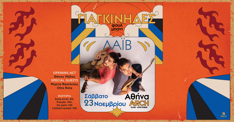 Οι ξεχωριστοί ΓΙΑΓΚΙΝΗΔΕΣ ξεκινούν την χειμερινή τους περίοδο με ένα εκρηκτικό live στο ARCH Live Club στο Γκάζι, το Σάββατο 23 Νοεμβρίου! Οι Γιαγκίνηδες είναι έτοιμοι να μας ξεσηκώσουν μέσα από αγαπημένα ρεμπέτικα και κλασικά λαϊκά τραγούδια παιγμένα με την νεανική τους ορμή και τον ξεχωριστό τους τρόπο!