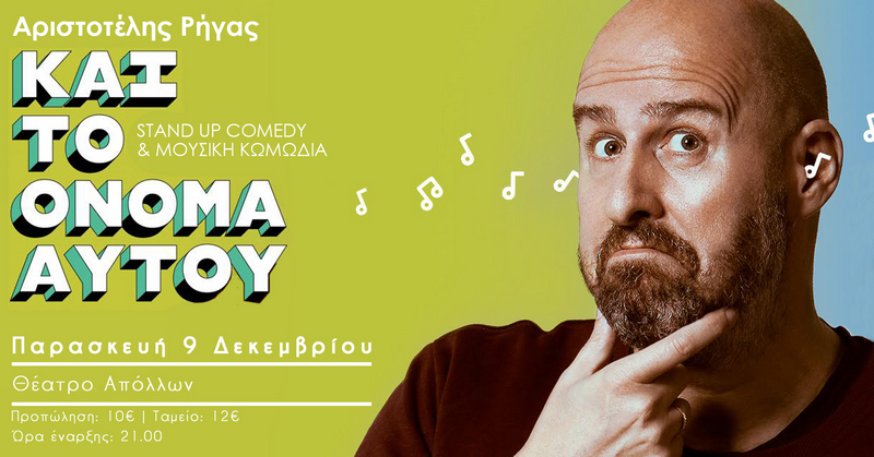 Την Παρασκευή 9 Δεκεμβρίου ο Αριστοτέλης Ρήγας θα βρίσκεται στο Θέατρο Απόλλων για να παρουσιάσει την τρίτη σόλο παράσταση του με τίτλο «Και το όνομα αυτού». Με τη γνωστή του συνταγή, μια δόση standup comedy, μια δόση μουσική κωμωδία και με μια εντυπωσιακή «παλέτα» αστείων, περνάει από τα καταιγιστικά λογοπαίγνια, σε μικρές σουρεαλιστικές ιστορίες, στις κοινές μας εμπειρίες από την έλευση της πανδημίας και καταλήγει στις δικές του εμπειρίες ως νέος πατέρας. Όλα αυτά πασπαλισμένα με ξεκαρδιστικά μουσικά mash up, παιδικά τραγούδια «αλλιώς», τον sin boy, iron maiden, radiohead και Τρικαλινό Michael Jackson. Ανάμεσα στις μουσικές του επιτυχίες, ήταν και η Φραγκοσυριανή!