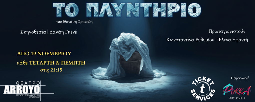 «ΤΟ ΠΛΥΝΤΗΡΙΟ» του Θανάση Τριαρίδη, σε σκηνοθεσία Δανάης Γκενέ ανεβαίνει στη σκηνή του Arroyo από 19 Νοεμβρίου, προσφέροντας μια βαθιά ματιά στα όρια της ηθικής.