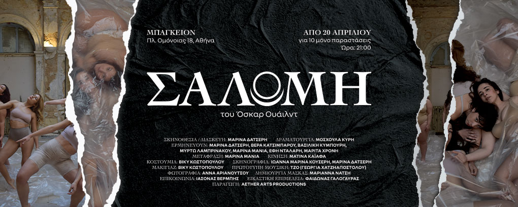 Η «Σαλώμη» του Όσκαρ Ουάιλντ επιστρέφει σε μια σύγχρονη σκηνική μεταγραφή που διερευνά τη γυναικεία ταυτότητα, την επιθυμία και τις δομές εξουσίας. Σε σκηνοθεσία και διασκευή της Μαρίνας Δατσέρη, μια νεοσύστατη γυναικεία θεατρική ομάδα παρουσιάζει μια πειραματική σκηνική σύνθεση.
