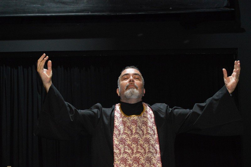 -τον παπά Παρθένιο. Παρακαλείται το φιλοθεάμον κοινό να μη δώσει ιδιαίτερη σημασία. (Παιδιά, είναι ο Κώστας, ο λογιστής μας, αλλά μας έπρηξε να τον κάνουμε παπά...)