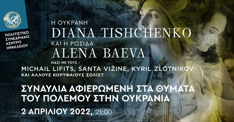 Η Ουκρανή Ντιάνα Τιστσένκο και η Ρωσίδα Αλένα Μπάεβα, δυο κορυφαίες βιολονίστριες, θα εμφανιστούν μαζί για πρώτη φορά στο ΠΣΚΗ, σε μια συναυλία αλληλεγγύης και ανθρωπισμού, μια συναυλία που αποδεικνύει ότι η Τέχνη ενώνει τον κόσμο. Μαζί τους, διάσημοι σολίστ, όπως η Λετονή βιολίστα Σάντα Βίζινε, ο Ισραηλινός - Πορτογάλος τσελίστας Κιρίλ Ζλότνικοφ, ο Ουζμπεκιστανός-Γερμανός πιανίστας Μιχαήλ Λίφιτς και άλλοι σπουδαίοι καλλιτέχνες που ανταποκρίνονται στο κάλεσμα του ΠΣΚΗ και παρουσιάζουν από το Ηράκλειο κορυφαία έργα που αντλούν την έμπνευσή τους από τα δεινά που επιφέρει ο πόλεμος, μεταφέροντας το πανανθρώπινο μήνυμα της ειρήνης και της αγάπης για όλο τον κόσμο. Στη συναυλία περιλαμβάνονται έργα, όπως το Adagio του Μπάρμπερ, το θέμα από την κινηματογραφική παραγωγή «Η Λίστα του Σίντλερ», η Πρώτη Μπαλάντα του Σοπέν, η «Παθητική» Σονάτα του Μπετόβεν, καθώς και το «Ενθύμιο από τη Φλωρεντία» του Ρώσου συνθέτη Πιοτρ Ίλιτς Τσαϊκόφσκι, καθώς και έργα των Αλμπινόνι και Μασενέ.