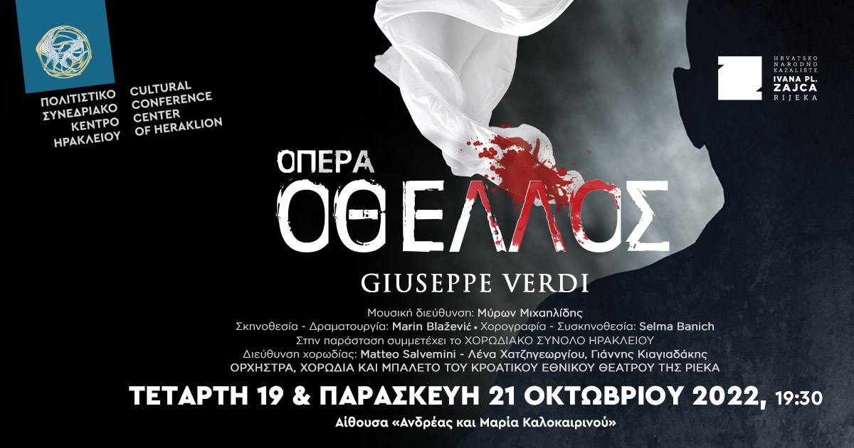 Βραβευμένη ως η Καλύτερη Παραγωγή Όπερας (Croatian Theatre Biennial Award) για τις καλλιτεχνικές περιόδους 2015/16 και 2016/17, η κορυφαία όπερα Οθέλλος του Τζουζέπε Βέρντι, παρουσιάζεται στο Πολιτιστικό Συνεδριακό Κέντρο Ηρακλείου, σε συνεργασία με την Όπερα του Κροατικού Εθνικού Θεάτρου της Ριέκα, υπό τη μουσική διεύθυνση του διεθνούς φήμης αρχιμουσικού Μύρωνα Μιχαηλίδη.