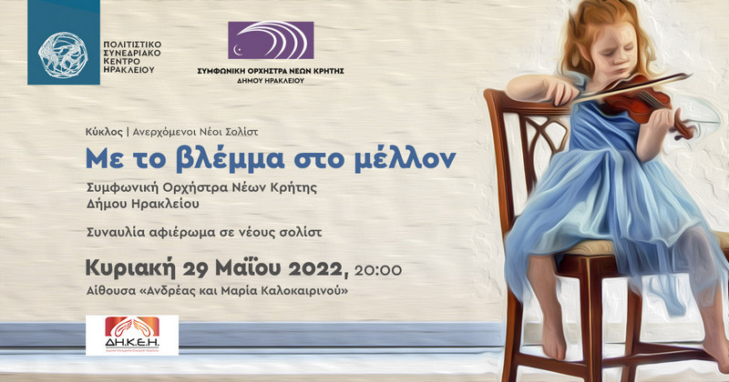 Η Συμφωνική Ορχήστρα Νέων Κρήτης του Δήμου Ηρακλείου (ΣΟΝΚΔΗ) με χαρά και περηφάνια συνδιαλέγεται με νέους και πολλά υποσχόμενους σολίστες του τόπου μας. Μαζί παρουσιάζουν ένα πρόγραμμα έργων από το μπαρόκ μέχρι τον Ρομαντισμό για σόλο όργανα και ορχήστρα.
