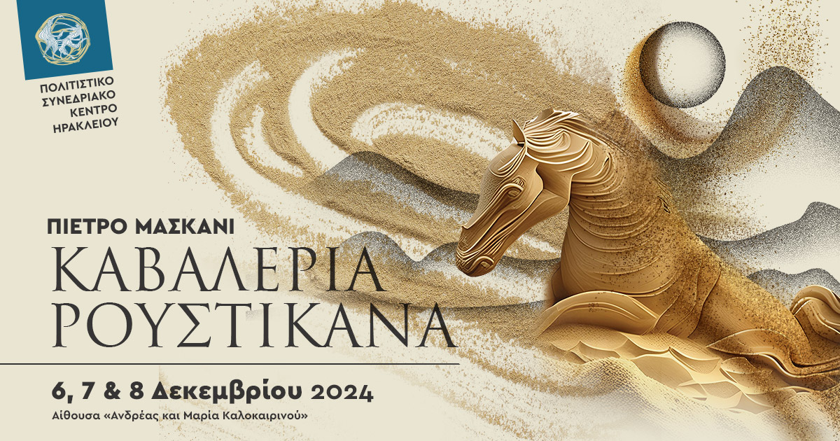 Το μονόπρακτο μελόδραμα Καβαλερία Ρουστικάνα (ελλ. Αγροτικός Ιπποτισμός) σε μουσική του Πιέτρο Μασκάνι και λιμπρέτο των Τζιοβάνι Ταρτζιόνι-Τοτσέτι και Γκουίντο Μενάσσι ανεβαίνει για τρεις παραστάσεις στις 6, 7 και 8 Δεκεμβρίου στη σκηνή της Αίθουσας «Ανδρέας και Μαρία Καλοκαιρινού» σε συνεργασία με το Ίδρυμα Μασκάνι της Ιταλίας που εδρεύει στο Λιβόρνο, υπό τη διεύθυνση του διεθνούς φήμης αρχιμουσικού Μύρωνα Μιχαηλίδη και σε σκηνοθεσία του Μάρκο Βολέρι, με τη Φιλαρμόνια Ορχήστρα Αθηνών, το Χορωδιακό Σύνολο Ηρακλείου και καταξιωμένους λυρικούς καλλιτέχνες.