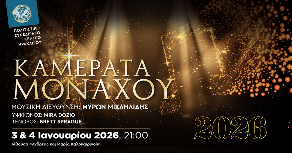Μετά τη θριαμβευτική περσινή της εμφάνιση και τις δύο sold out συναυλίες που ενθουσίασαν το ακροατήριο, η Καμεράτα του Μονάχου επιστρέφει στο Πολιτιστικό Συνεδριακό Κέντρο Ηρακλείου για δύο εορταστικές συναυλίες υπό τη διεύθυνση του διεθνώς καταξιωμένου αρχιμουσικού Μύρωνα Μιχαηλίδη. Η διάσημη ορχήστρα δωματίου, που ιδρύθηκε το φθινόπωρο του 1998 με πρωτοβουλία των βιρτουόζων εγχόρδων του Μονάχου, θα πλημμυρίσει την Αίθουσα «Ανδρέας και Μαρία Καλοκαιρινού» με τη μοναδική της ενέργεια το πρώτο Σαββατοκύριακο του 2026. Με ένα ξεχωριστό πρωτοχρονιάτικο πρόγραμμα γεμάτο αγαπημένα έργα, η Καμεράτα του Μονάχου έρχεται να μοιραστεί με το φιλόμουσο κοινό ένα πανηγυρικό μουσικό καλωσόρισμα της νέας χρονιάς.
