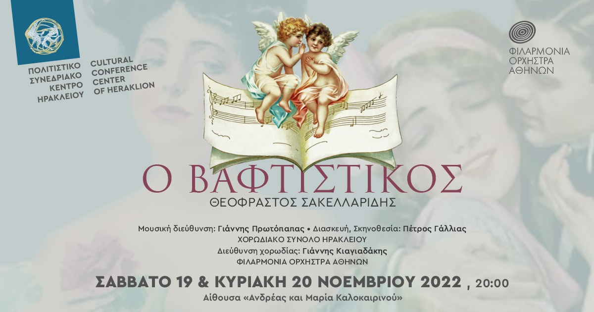 Μετά την επιτυχημένη του πρεμιέρα στο Πολιτιστικό Συνεδριακό Κέντρο Ηρακλείου τον Μάιο του 2022, Ο Βαφτιστικός του Θεόφραστου Σακελλαρίδη, η δημοφιλέστερη ελληνική οπερέτα, σε διασκευή, σκηνοθεσία και χορογραφία του Πέτρου Γάλλια, με τη σύμπραξη της Φιλαρμόνια Ορχήστρας Αθηνών και του Χορωδιακού Συνόλου Ηρακλείου και πλειάδας δημοφιλών λυρικών πρωταγωνιστών, συνεχίζει τη διαδρομή του στο ΠΣΚΗ με δύο ακόμα παραστάσεις. Ένα έργο-σταθμός για το ΠΣΚΗ, καθώς με αυτό εγκαινιάστηκε στην Αίθουσα «Ανδρέας και Μαρία Καλοκαιρινού» ο κύκλος της οπερέτας, χωροθετημένο μεταξύ πολεμικού μετώπου και του αστικού οίκου της αθηναϊκής Μπελ επόκ, που συνδυάζει την ξεκαρδιστική θεατρική πλοκή και τα πασίγνωστα τραγούδια που όλοι σιγοτραγουδάμε...