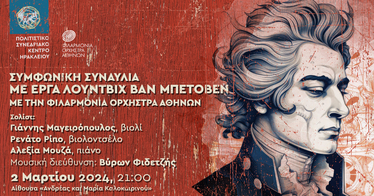 Η Φιλαρμόνια Ορχήστρα Αθηνών, θα προσφέρει ακόμα μια φορά ένα πρόγραμμα με το μεγαλείο του κλασικού. Τρία εμβληματικά έργα της συμφωνικής μουσικής, την εισαγωγή Λεονώρα σε Nτο μείζονα, Αρ. 3, Έργο 72b, το Τριπλό κοντσέρτο σε Ντο μείζονα, Έργο 56 και την Συμφωνία Αρ. 6 (Ποιμενική), σε Φα Μείζονα, Έργο 68 θα έχει την ευκαιρία να απολαύσει το κοινό του Ηρακλείου. Σολίστ στο κοντσέρτο θα είναι ο ανερχόμενος ταλαντούχος Γιάννης Μαγειρόπουλος στο βιολί και οι καταξιωμένοι Ρενάτο Ρίπο στο βιολοντσέλο και Αλεξία Μουζά στο πιάνο.