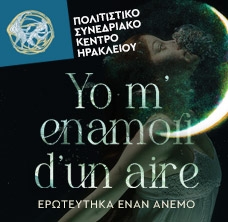 Το Πολιτιστικό Συνεδριακό Κέντρο Ηρακλείου παρουσιάζει τη μουσική παράσταση Yo m' enamori d' un aire (Ερωτεύτηκα έναν άνεμο). Καθώς, κατά την ιδέα της παράστασης, δύο λυρικές τραγουδίστριες, οι ΡαδιοΜούσες (Μίνα Πολυχρόνου και Αγγελική Καθαρίου), αποτελούν την πηγή έμπνευσης και τον σχεδιασμό μιας εκπομπής ενός ραδιοφωνικού παραγωγού (Διονύσης Μαλλούχος) που παίζει πιάνο, οι λυρικές φωνές και το πιάνο αλληλοαποκαλύπτουν θραύσματα, συνενώνουν νήματα, υφαίνουν στολίδια λόγου και μουσικής. Ο μίτος της ραδιοφωνικής εκπομπής ξετυλίγεται, σ' ένα παιχνίδι ποίησης, μνήμης, αυτοσχεδιασμού και μουσικής, και το πρόγραμμα ζωντανεύει στο χαρτί του ραδιοφωνικού παραγωγού και στην αίθουσα/οθόνη, με συνδέσεις και ανατροπές, σχέσεις και αντιθέσεις. Το πλέγμα, το παλίμψηστο που δημιουργείται ως συστατικά έχει έργα των H. Purcell, G. Caccini, Γ. Κωνσταντινίδη, Μ. Θεοδωράκη, C. Debussy, Ν. Ταίηλορ, Θ. Μικρούτσικου, F. Obradors, Ε. Satie, F. Poulenc και άλλων.