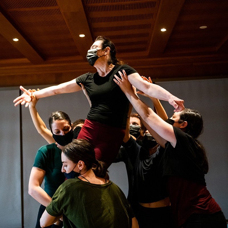 Μεσάνυχτα σ' ένα μπαρ, με τους περφόρμερ ως θαμώνες να κατακτούν τον χώρο, και να μας οδηγούν, πέρα από φραγμούς και συμβάσεις, σε έναν τόπο όπου κυριαρχεί η εκστατικότητα του σώματος. Εννέα χορεύτριες με και χωρίς κινητική αναπηρία και προβλήματα όρασης συνθέτουν ένα έργο στα όρια μιας χορευτικής επιδημίας. Πώς συγκροτείται η κοινότητα, ποια είναι η λειτουργία του εξιλαστήριου θύματος και ο ρόλος της τελετουργικής βίας; Σε τέτοια ερωτήματα εστιάζει η χορογραφική έρευνα, μέσα από το στοιχείο της έκπληξης αλλά και της αισιοδοξίας που προσφέρει η συνείδηση της στιγμής και η άμεση εμπειρία.