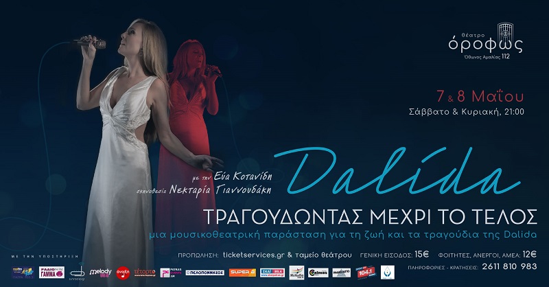 «Dalida. Τραγουδώντας μέχρι το τέλος» ("En chantant jusqu' au bout"): Μια μουσικοθεατρική παράσταση για τη ζωή και τα τραγούδια της Dalida, μιας εμβληματικής γυναίκας που έγραψε ιστορία στη γαλλική αλλά και την παγκόσμια μουσική σκηνή, ανέβηκε από τις 27 μέχρι τις 30 Δεκεμβρίου 2021 στο Μέγαρο Μουσικής Αθηνών και τώρα παρουσιάζεται στο κοινό της Πάτρας, στο θέατρο «όροφως».