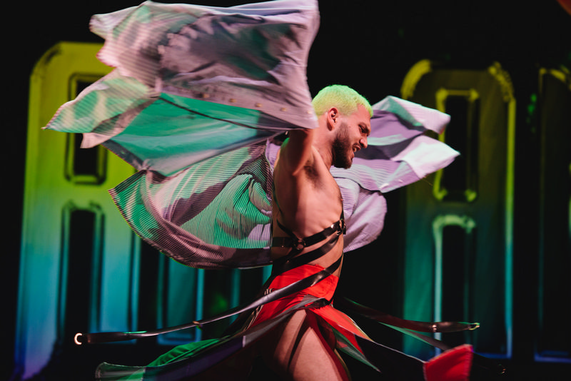 Το κοστούμι και το ηχοτοπίο συνυπάρχουν επί ίσοις όροις με το κινούμενο σώμα εξερευνώντας ένα βαθύ διάλογο μετασχηματισμού της φόρμας.